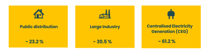 This decline is the result of a significant reduction in consumption by public distribution and large industrial customers connected to the transmission network, as well as a reduced demand on gas-fired power plants.