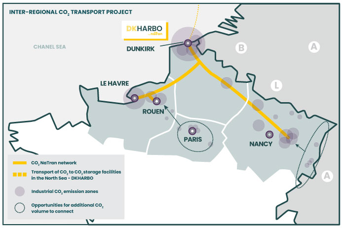 The strength of the project also lies in its geographical dimension. The regions concerned are home to a significant proportion of France's industrial emissions, as well as emerging CO₂ capture and recovery projects. The route studied in the pre-feasibility phase aims to link the main emission basins of Hauts-de-France, Grand Est and Normandy, with a connection to the Seine Valley and Île-de-France. The network will enable the captured CO₂ to be transported to reprocessing sites, but also to the port of Dunkirk, where the DKHARBO project led by NaTran in partnership with Equinor (a Norwegian company, a pioneer in CO2 storage in Europe), paves the way for CO2 to be transported by undersea pipeline to permanent geological storage sites in the North Sea.