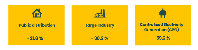This decline is the result of a significant reduction in consumption by public distribution and large industrial customers connected to the transmission network, as well as a reduced demand on gas-fired power plants.