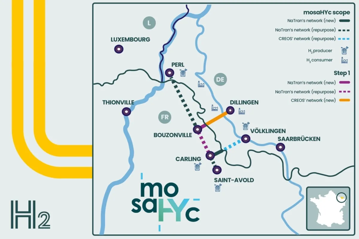 To connect with the CREOS Deutschland network, two sites will be built, one in Diesen and the other in Bouzonville. They will connect an initial link at Creutzwald for the arrival of hydrogen from Völklingen, and a second link at Heining-lès-Bouzonville to supply industries in the Dillingen basin.